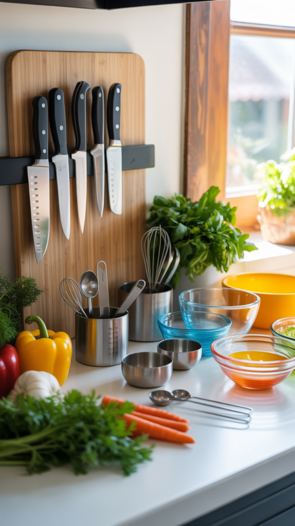 The cornerstone of any efficient kitchen is a set of high-quality knives. A sharp, reliable chef’s knife is a must for chopping vegetables, slicing meats, and dicing herbs. Pair it with a versatile paring knife for more precise tasks, and you’ll tackle any ingredient with ease. Remember, a good knife can save you time and effort, making prep quick and enjoyable.