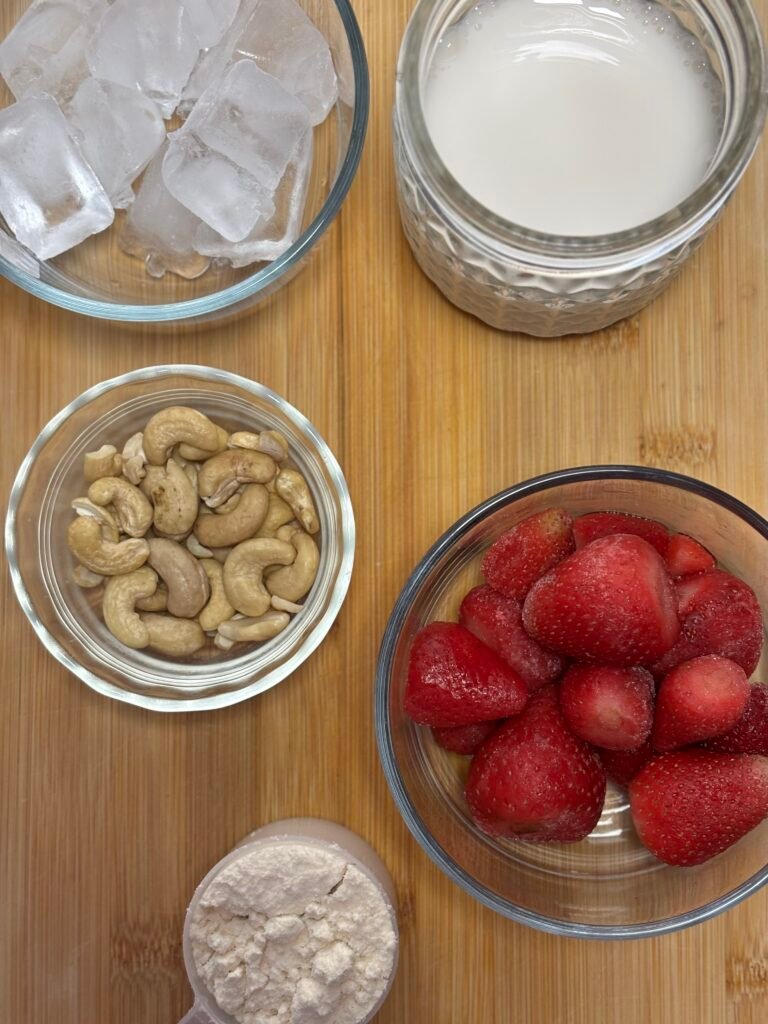 Cashews are the secret to the creamy texture here. They blend smoothly and add richness without overpowering the strawberries.